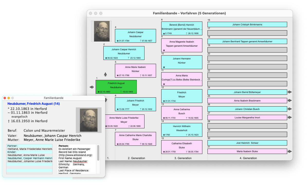 Vorfahrenfesnter (5 Generationen)
