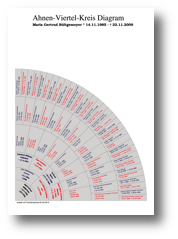 Ahn_viertel (download 97kB) 16.01.2019 Diese Vorlage erzeugt eine Postscriptdatei, die Sie in beliebiger Größe, ohne Qualitätsverluste, ausgeben können. Sie zeigt in einem Viertelkreis 6 Generationen. Unter Windows und Linux benötigen Sie zur Anzeige von Postscriptdateien zusätzliche Software. Ich habe „Postscript Viewer“ als gute und kostenlose Möglichkeit gefunden. Seit macOS 13 (Ventura) werden Postscript-Dateien von "Vorschau" nicht mehr angezeigt. Als Alternative ist der PDF-Reader Skim geeignet. |