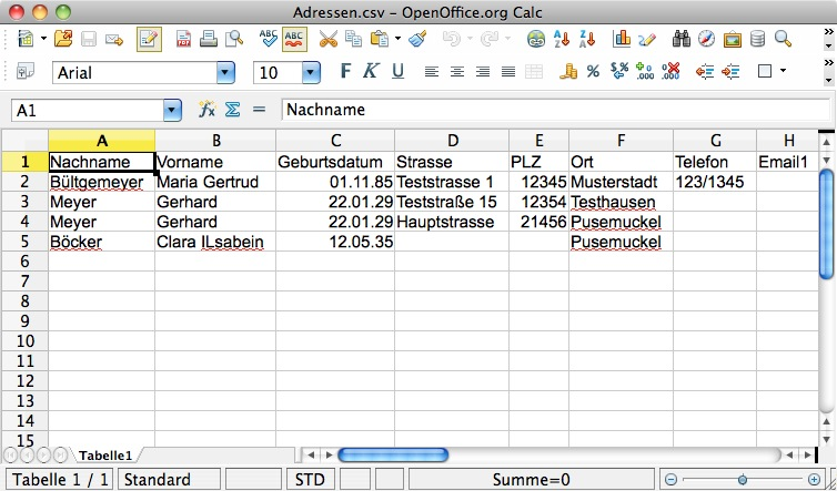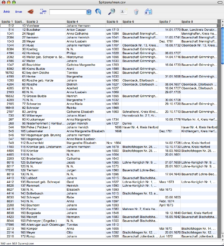 4kB) 07.12.2006 Wenn Sie mal eine Tabelle aller Spitzenahnen benötigen, ist diese Vorlage genau richtig für Sie. Nach dem Export erhalten Sie eine Datei im CSV-Format, die sie in eine beliebige Tabellenkalkulation (z.B. Excel oder Open Office) importieren können. Die nebenstehende Vorschau entstammt der Datenbank von Papyrus Office. |