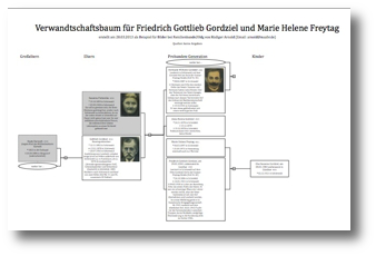 ![]() ![]() (Windows: download 1,6MB) (Mac OS/Linux: download 1,8MB) "Wenn man schon Erfahrung mit dem Export aus Familienbande hat und sich an der Kurzanleitung (bei mir Mac OS) orientiert, ist die Gesamtdarstellung in wenigen Minuten erstellt. Den größten Teil der Zeit ist Open Office mit der Erstellung der einzelnen Personentafeln beschäftigt." (Stefan Mettenbrink) |